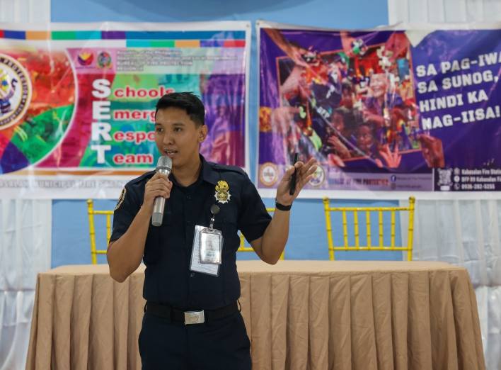 The seminar began with an informative lecture led by SPO1 Jhon Dominique P. Bernardo, who discussed the proper use of fire extinguishers and how to maintain them to ensure effectiveness during emergencies. This was followed by FO1 Roberto Jr S. Genolos, who introduced the different tools and equipment used by firefighters. A short demonstration was also done, including the proper wearing of firefighters' gear.